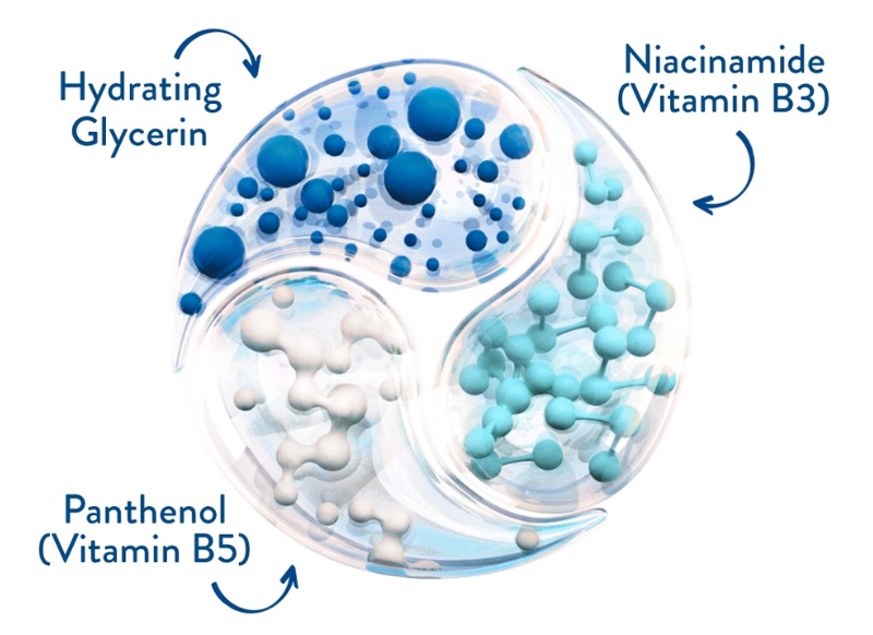 Sản phẩm nổi bật với sự kết hợp của 3 thành phần dưỡng da là Niacinamide (Vitamin B3), Panthenol (Vitamin B5) và Hydrating Glycerin giúp làm mềm và dịu, dưỡng ẩm chuyên sâu, tái tạo và phục hồi da bị tổn thương, kích thích tế bào da hoạt động và phát triển, chống lão hóa, củng cố lớp hàng rào bảo vệ da.